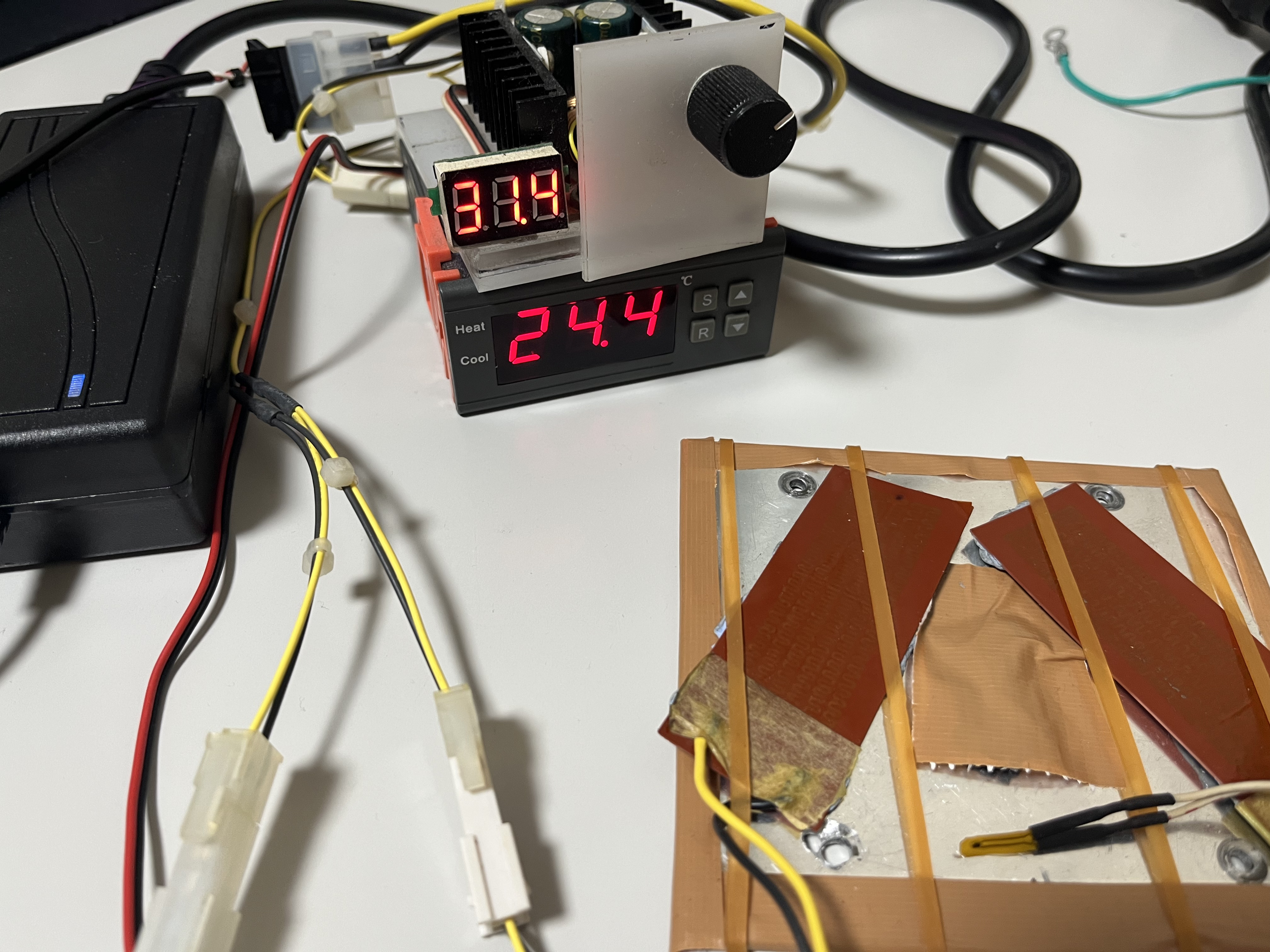 DRAMのsamsung用に友人が作ってくれた温度管理システムです。指定した温度を下回ればヒーターがONになり、逆に上回ればOFFになる優れものです。