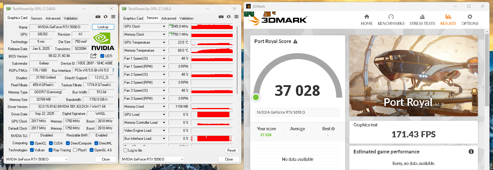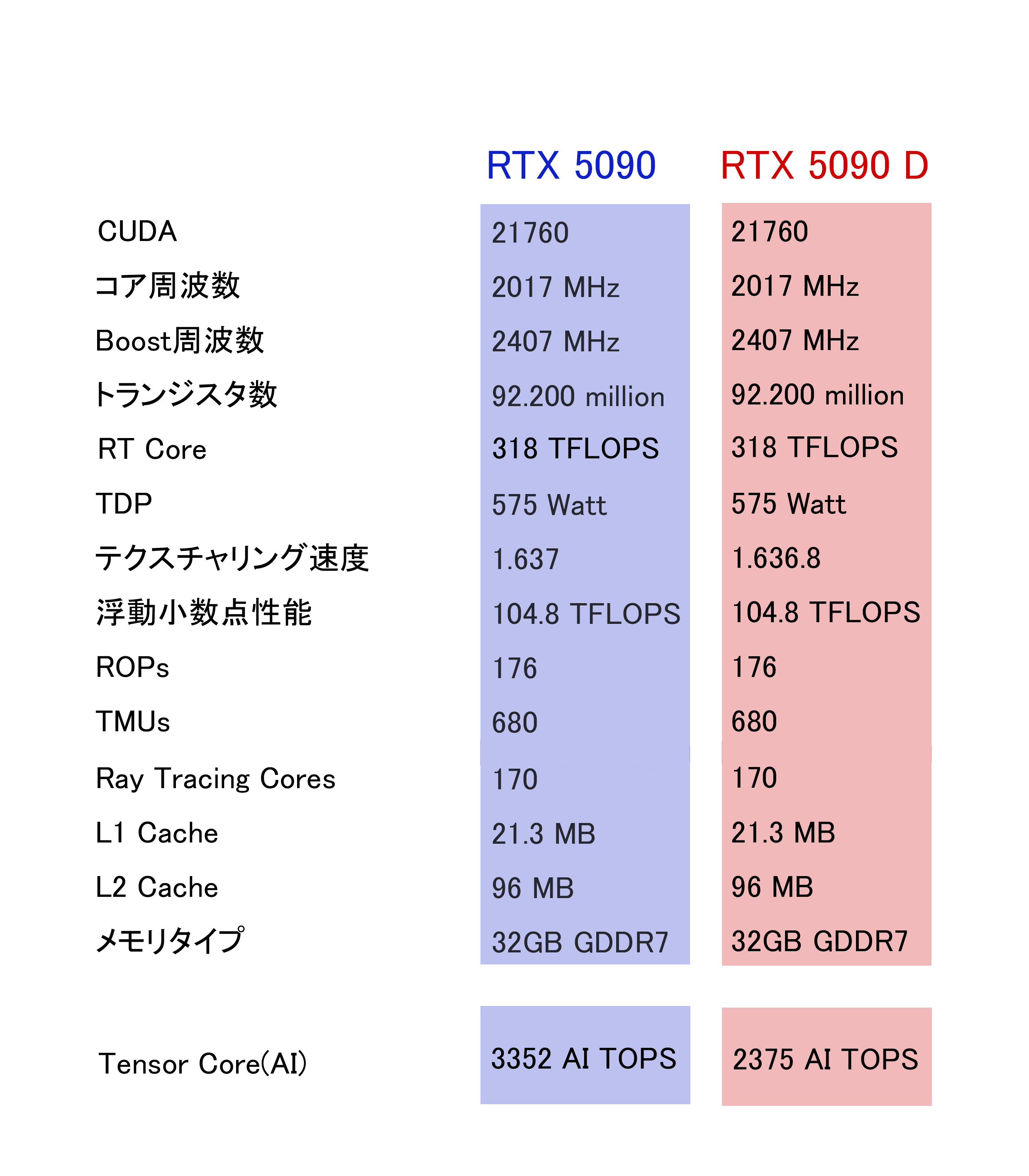 AI性能を削られているだけで私のようにゲームやベンチマークしかやらない凡人にとって、5090と性能差はほぼ無いに等しいので運よく入手できてとてもラッキーでした。